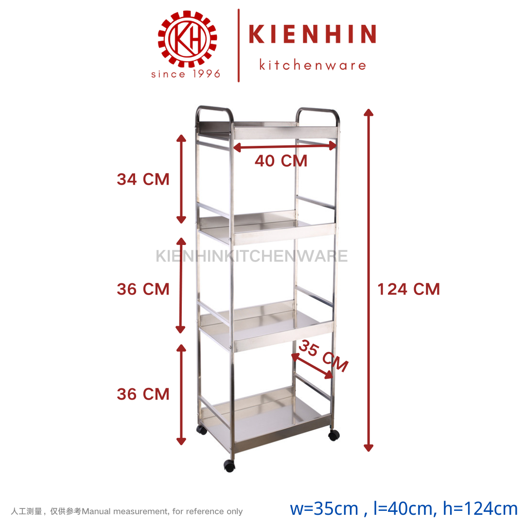 S/S MULTIPURPOSE ROLLER RACK 4 LAYER | TROLLEY RACK | 4 TINGKAT TROLI RAK BERODA | 有轮4层白钢置物架 | 推车置物架
